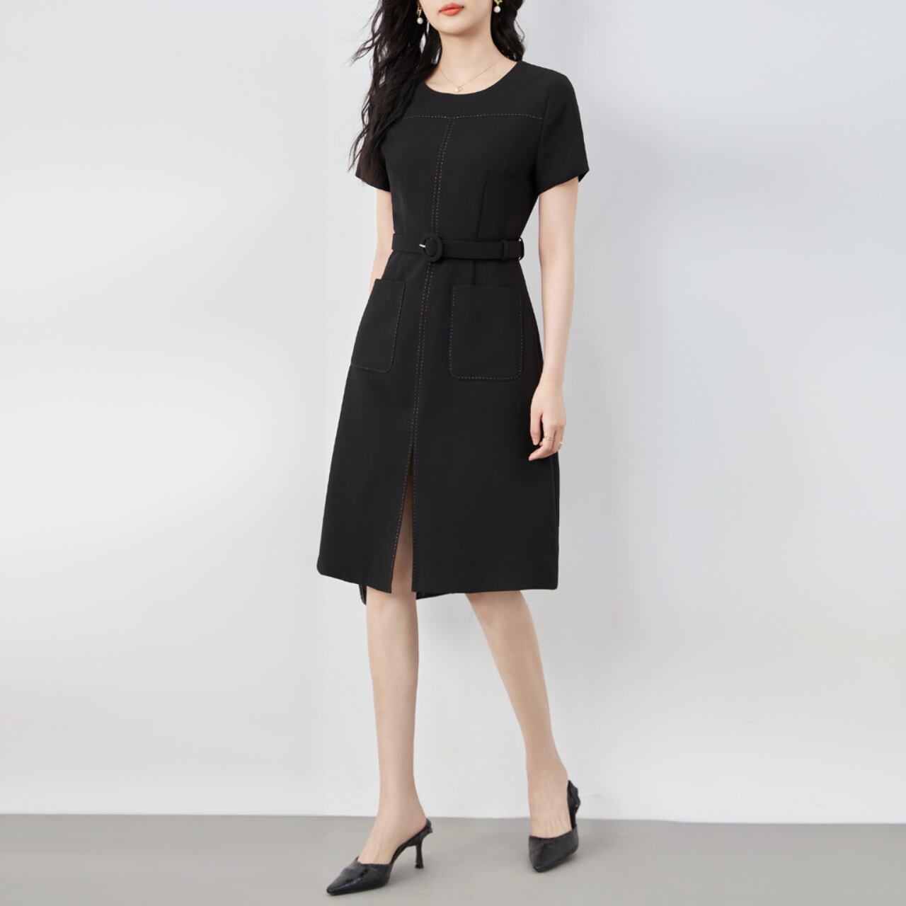 A-line dress with waist belt 00073