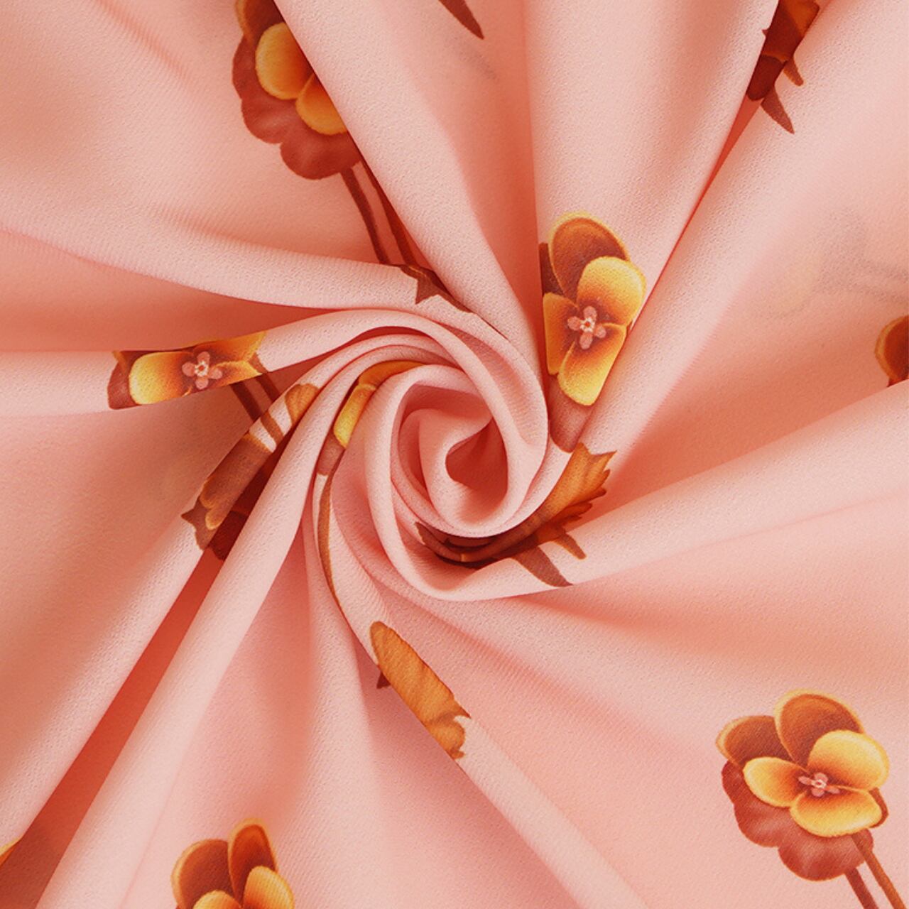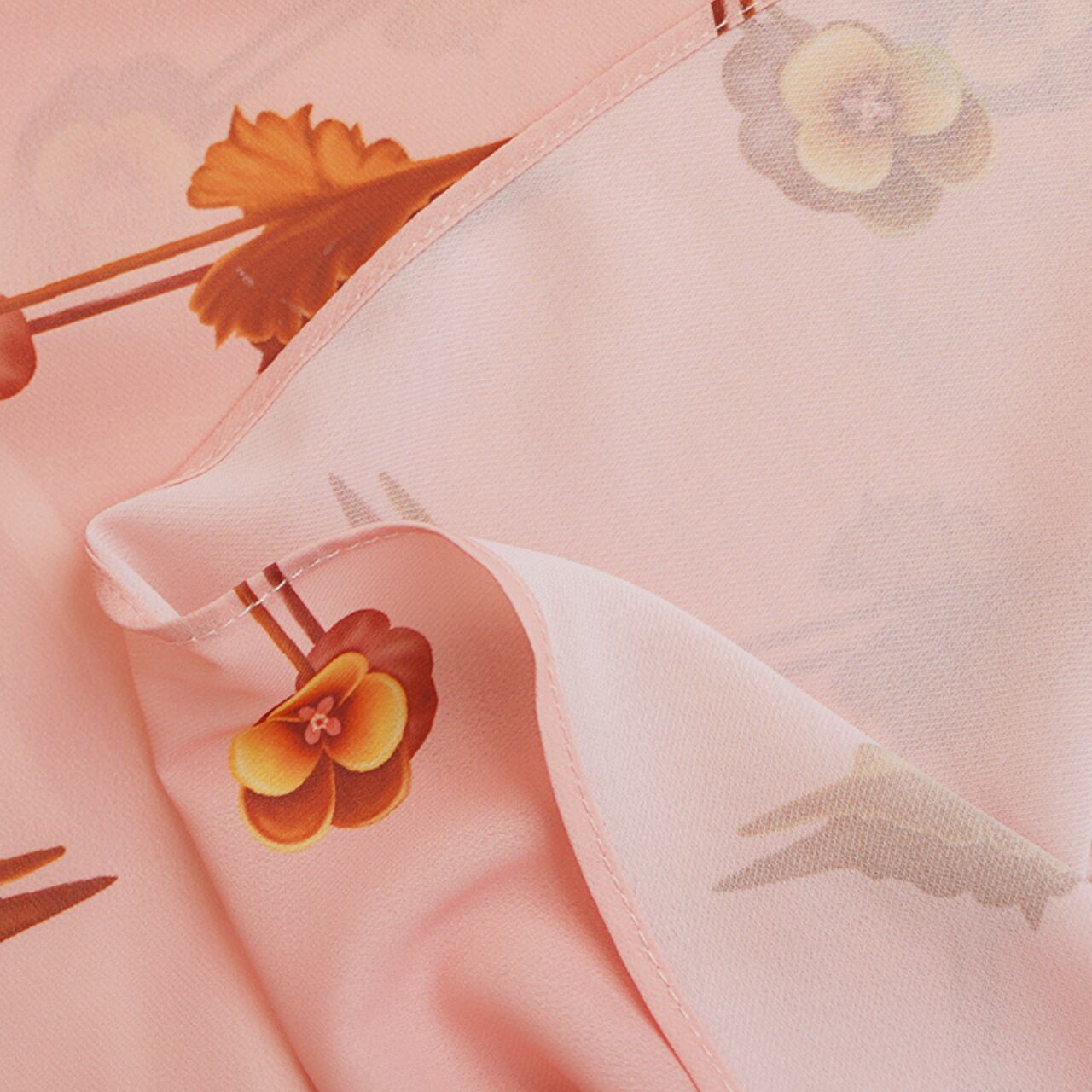 甘すぎない落ち着いたピンク地に、オレンジがかったブラウンの花柄が上品に散りばめられています。