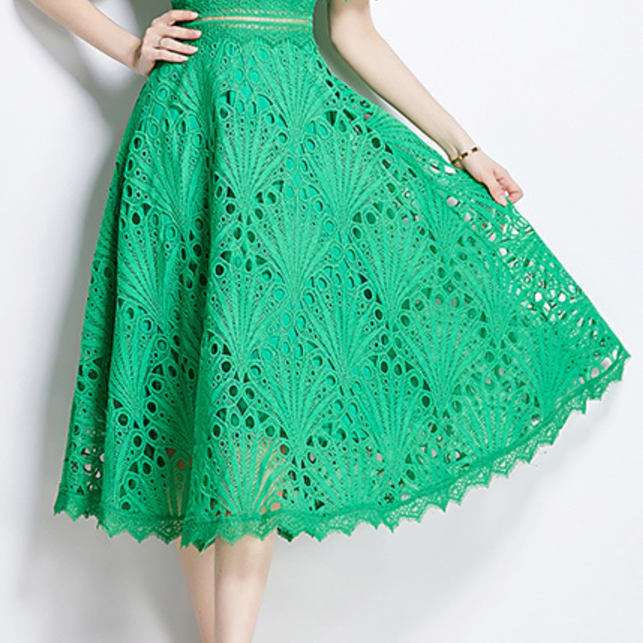 美しいAラインシルエットが、体型をカバーしながら優雅な印象を与えます。