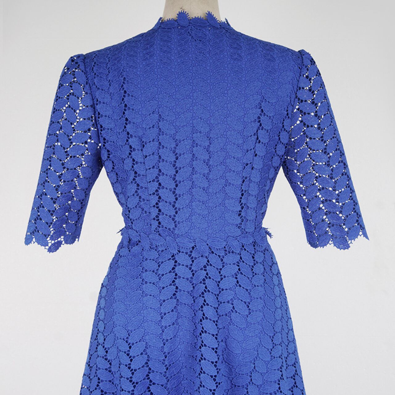 七分袖Vネックドレスは、繊細な葉っぱ柄のレースが美しい、一枚で華やかさを演出するドレスです。