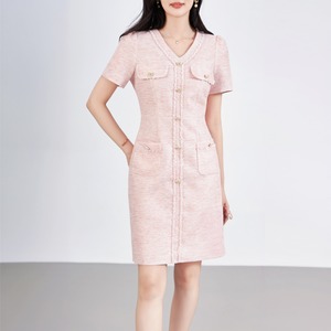 上品なAラインシルエットで、エレガントかつスタイリッシュな膝丈ワンピースです。