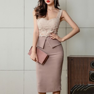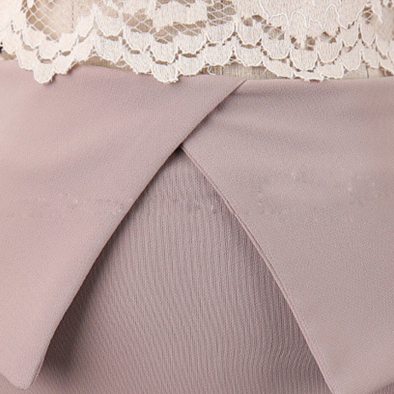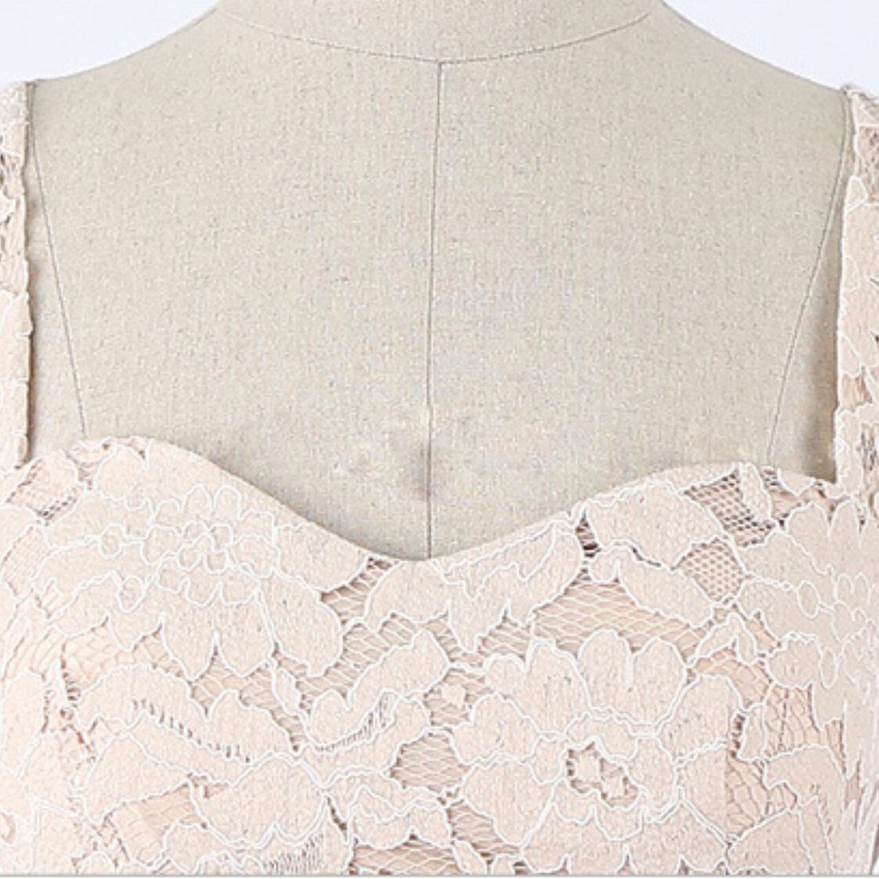 エレガントなデザインが魅力のワンピースドレス。繊細なレースのトップがフェミニンな雰囲気を演出し、スタイルを美しく引き立てます。特別な日の装いにぴったりな一着です。