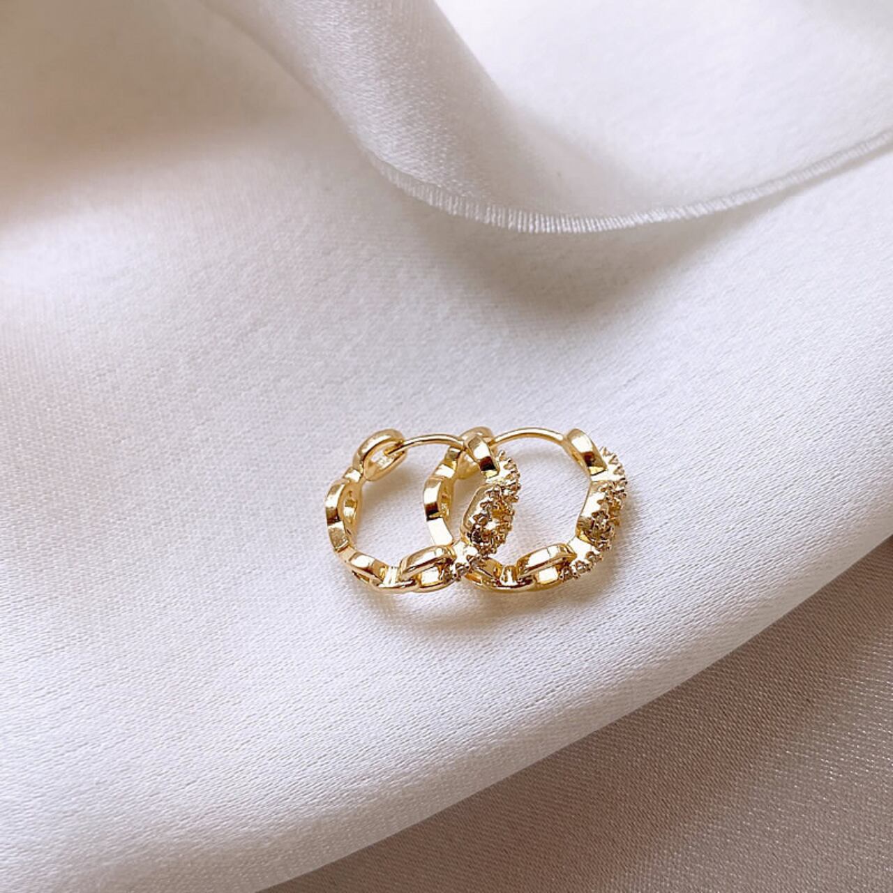 このゴールドのピアスは、繊細なデザインが魅力で、耳元をエレガントに演出します。