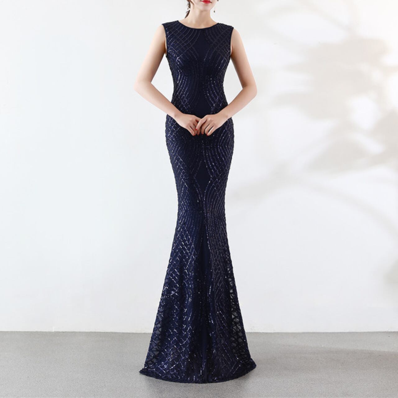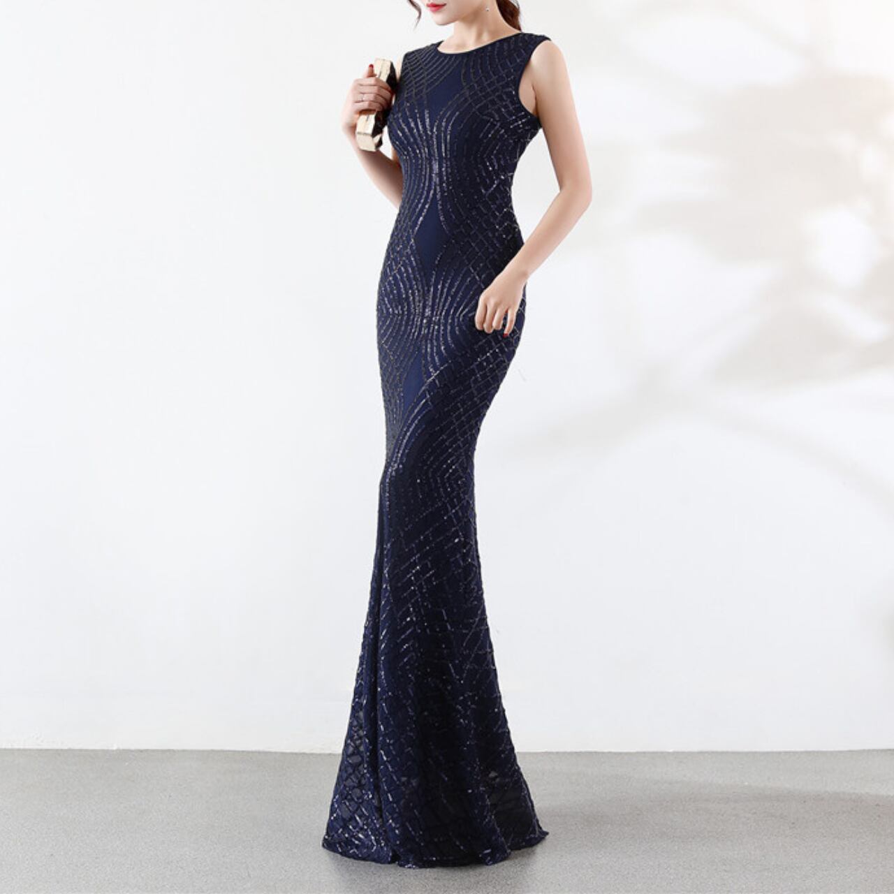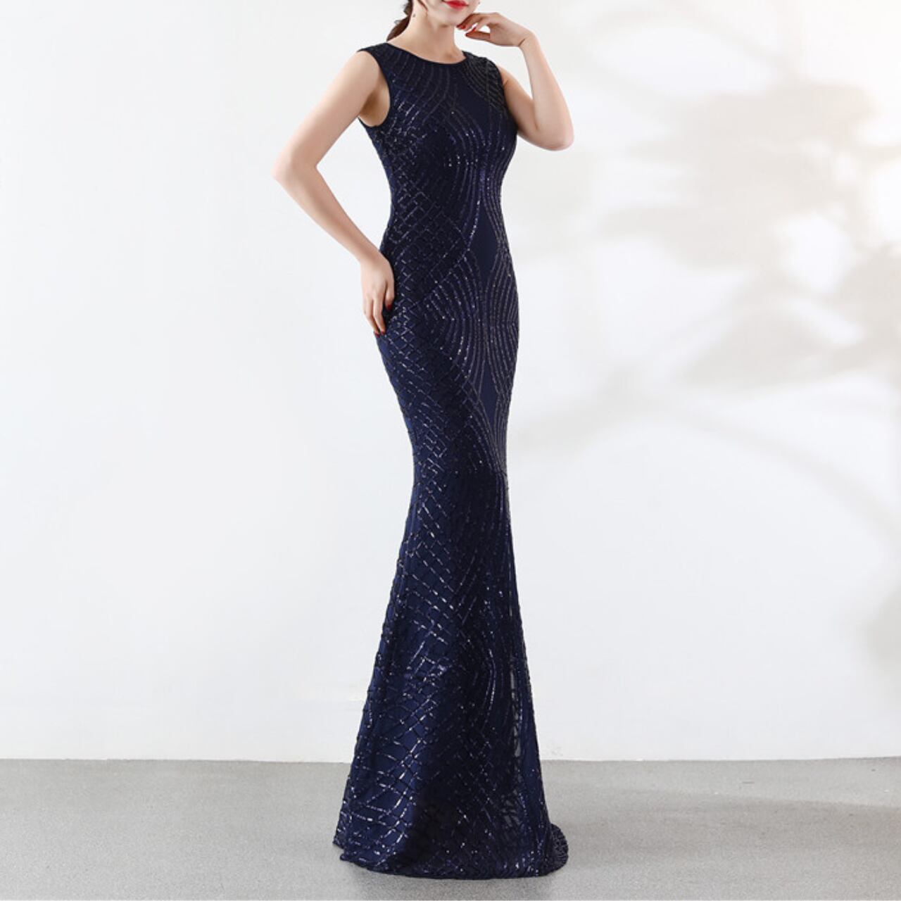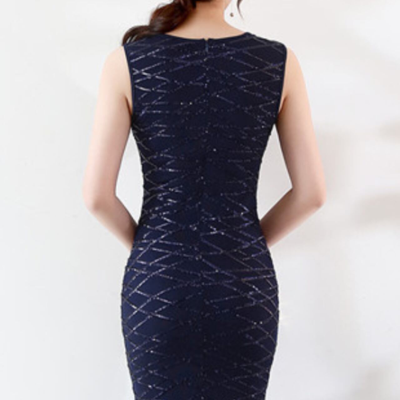 袖なしのスタイルが肩を引き立て、さらに洗練された印象を与えます。この一着で、パーティーやイベントで際立つ存在になるでしょう。