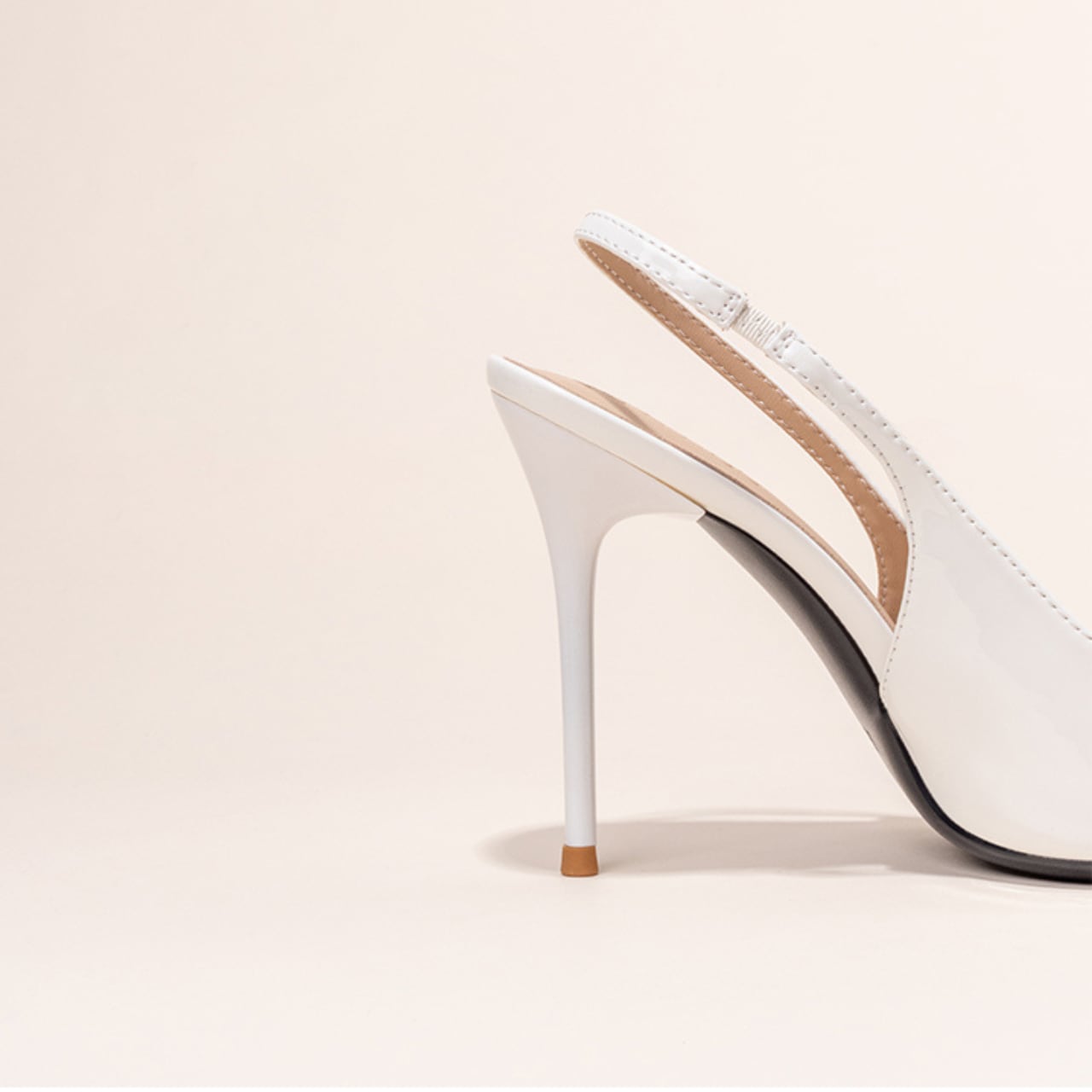 スリングバックスタイルが快適さとスタイリッシュさを兼ね備え、特別なイベントやフォーマルなシーンにぴったりです。