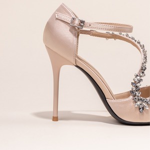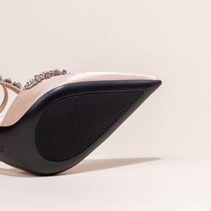 繊細なサテン地に、まるでジュエリーのように輝くビジューを贅沢にあしらったドレスシューズ。