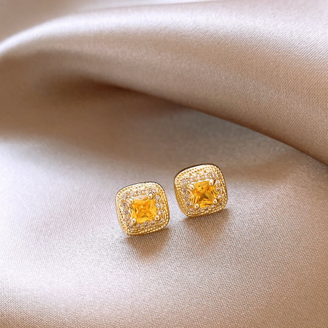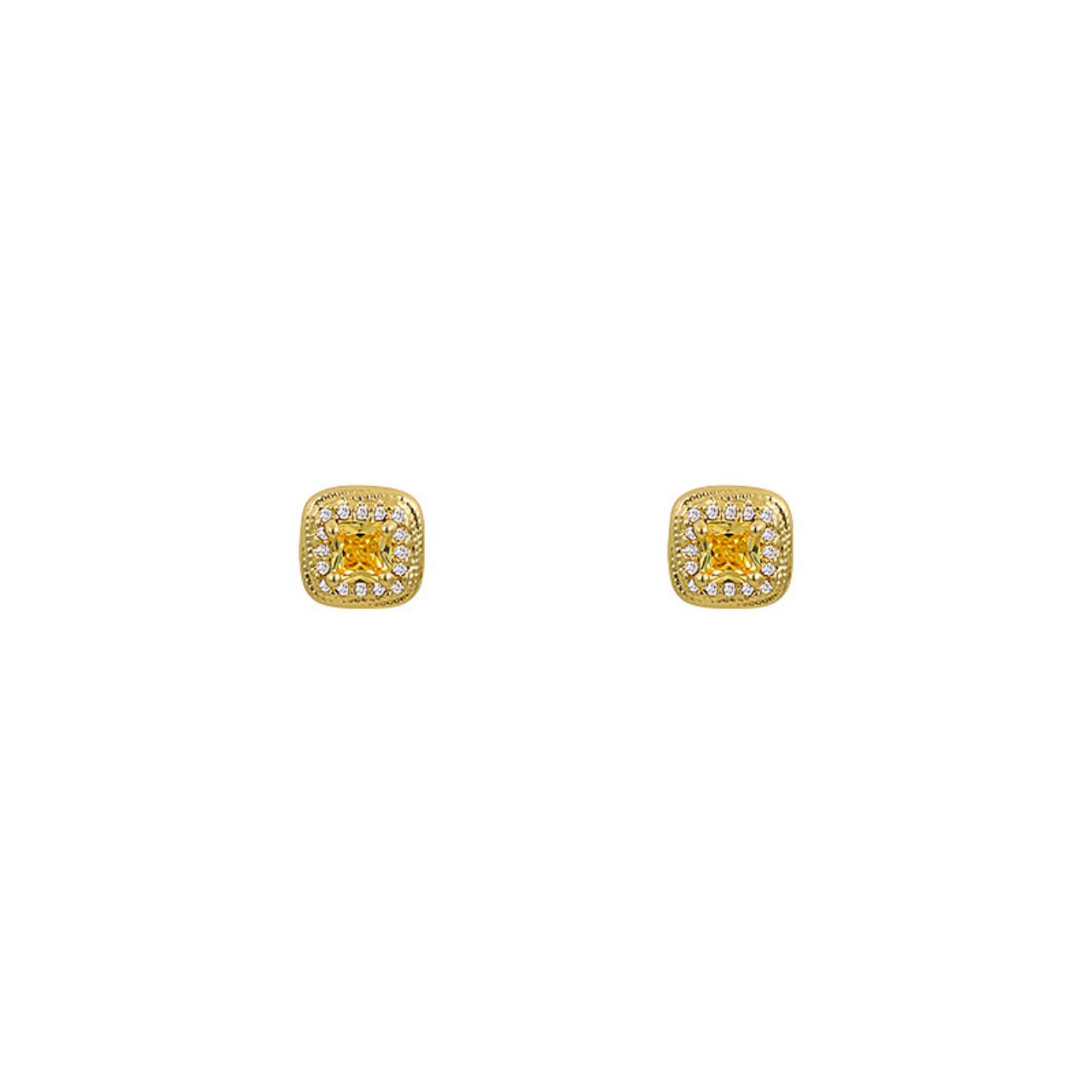 鮮やかなイエローストーンが輝くスクエアピアス。