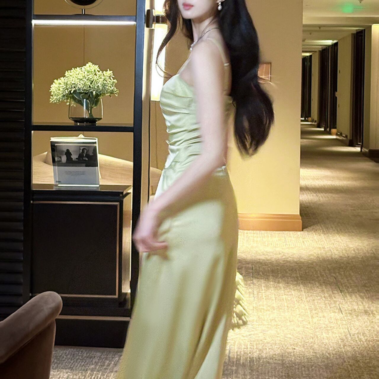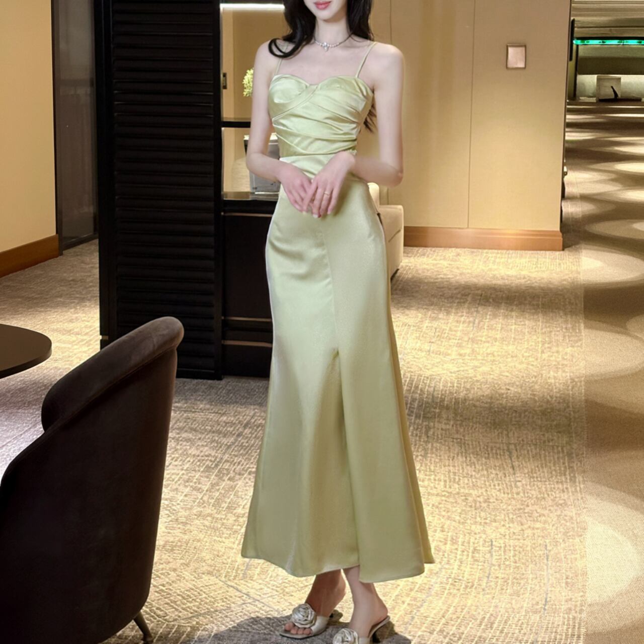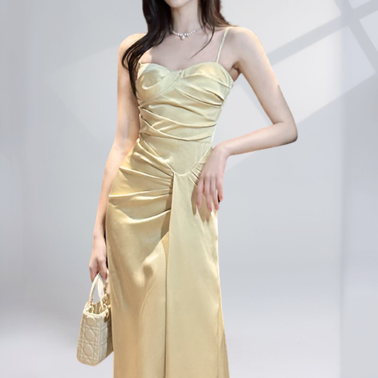 体にフィットする美しいシルエットがエレガンスを際立たせます。どんなパーティーやフォーマルな場面でも注目を集める一着です。洗練された装いを求める方にぴったりのドレスです。