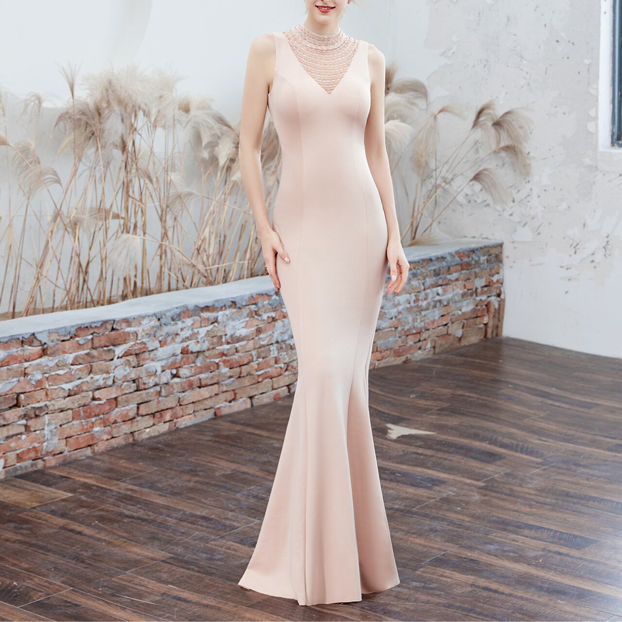 体にフィットするラインが女性らしい曲線を美しく強調し、裾に向かって広がるフレアが優雅な動きを演出します。