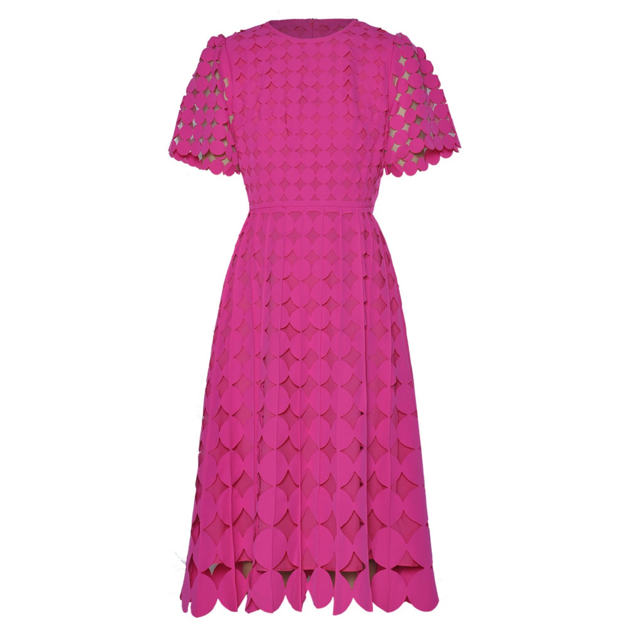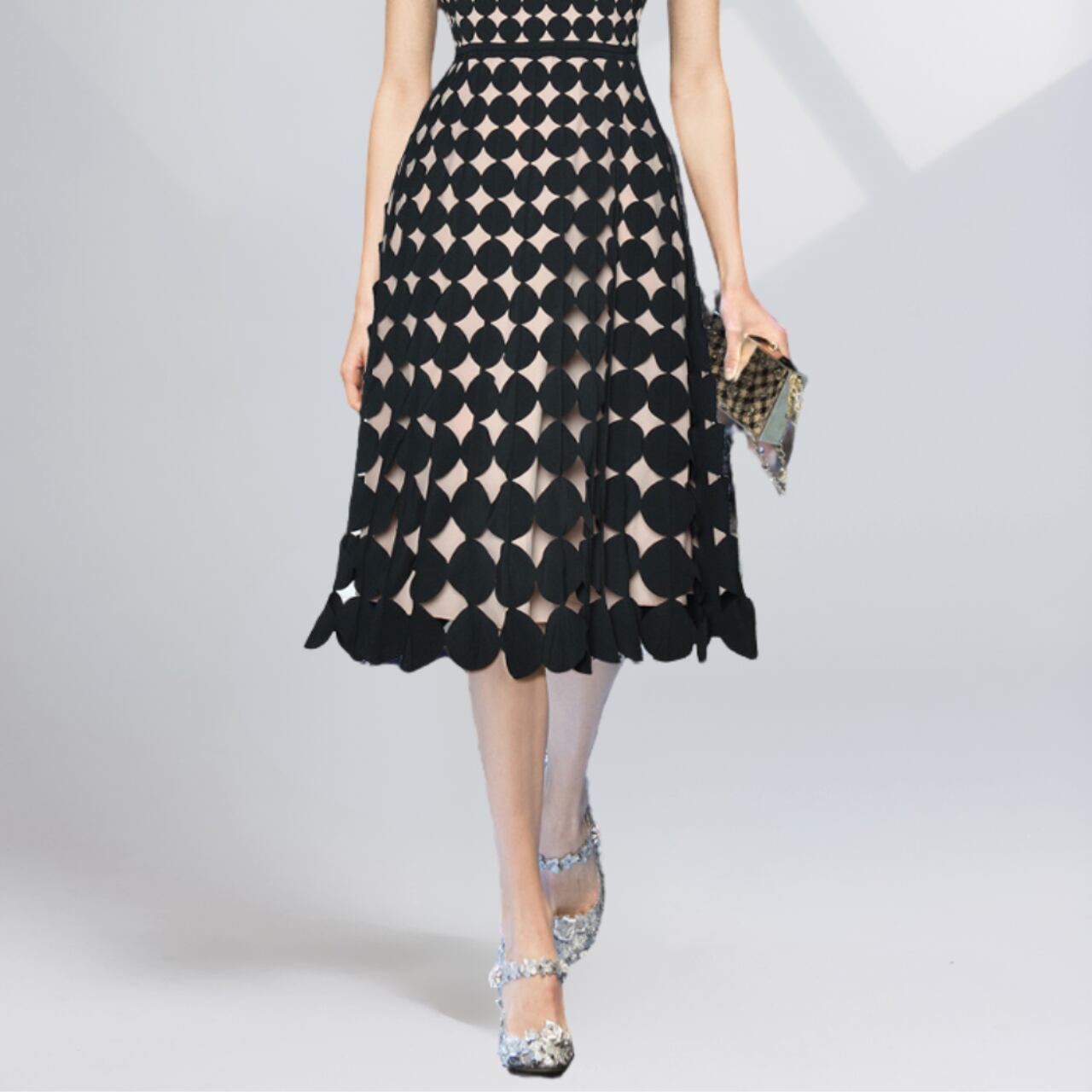 フェミニンなミディ丈ながらも、どこかエッジの効いたモードな雰囲気で、