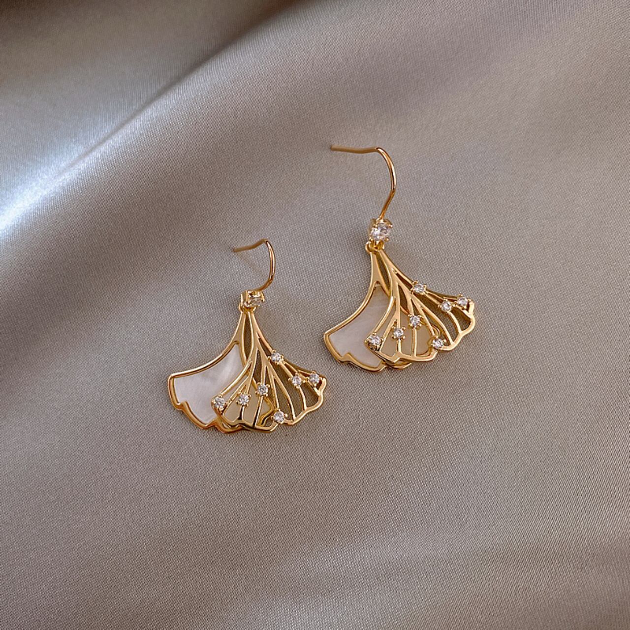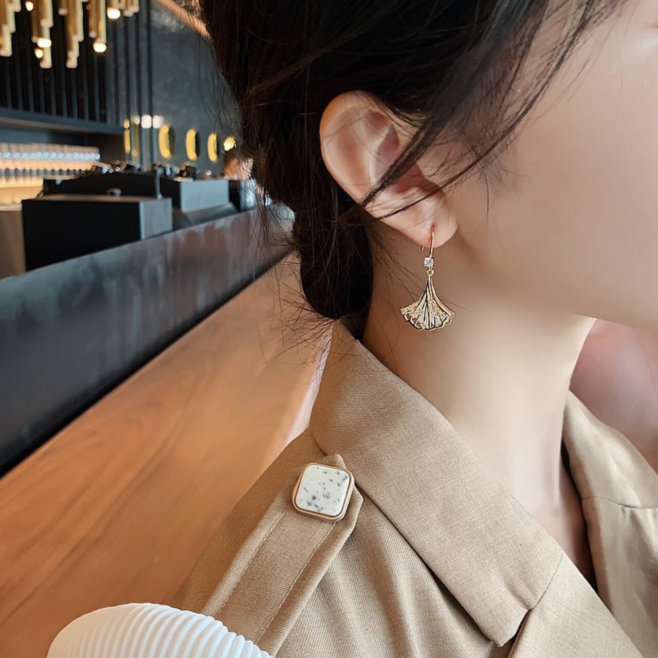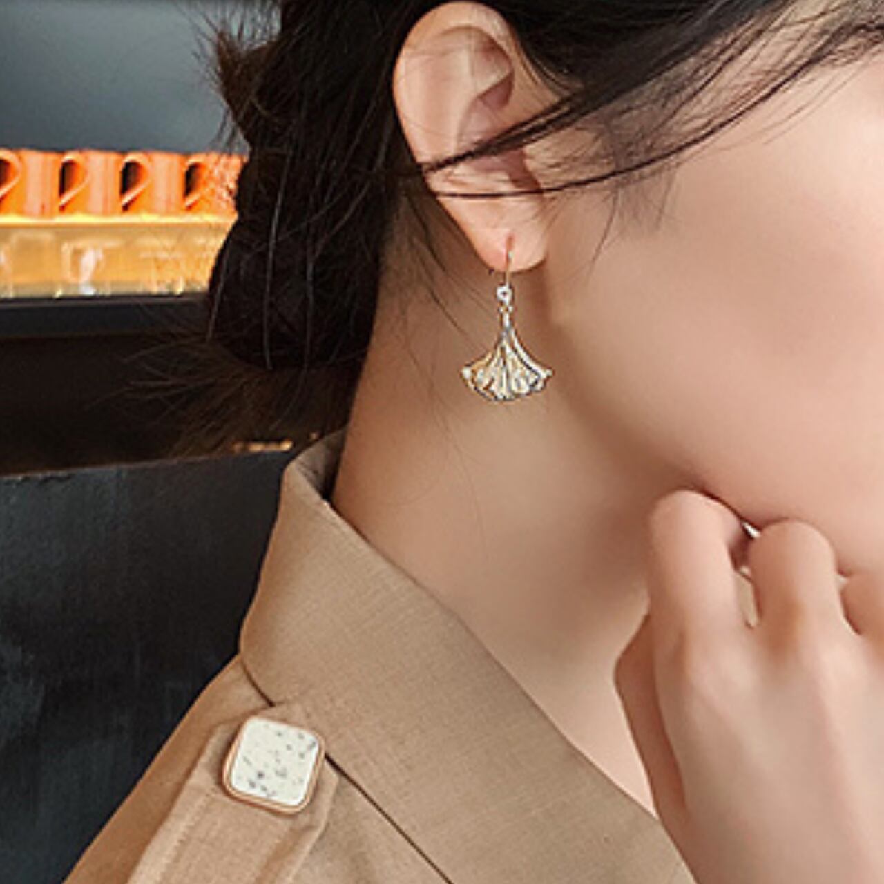 Metal Ginkgo Leaf Motif Hoop Earrings 00205