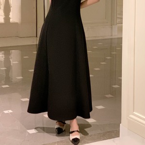 裾にかけて広がるフレアスカートは、女性らしいシルエットを際立たせ、優雅な着こなしを叶えます。