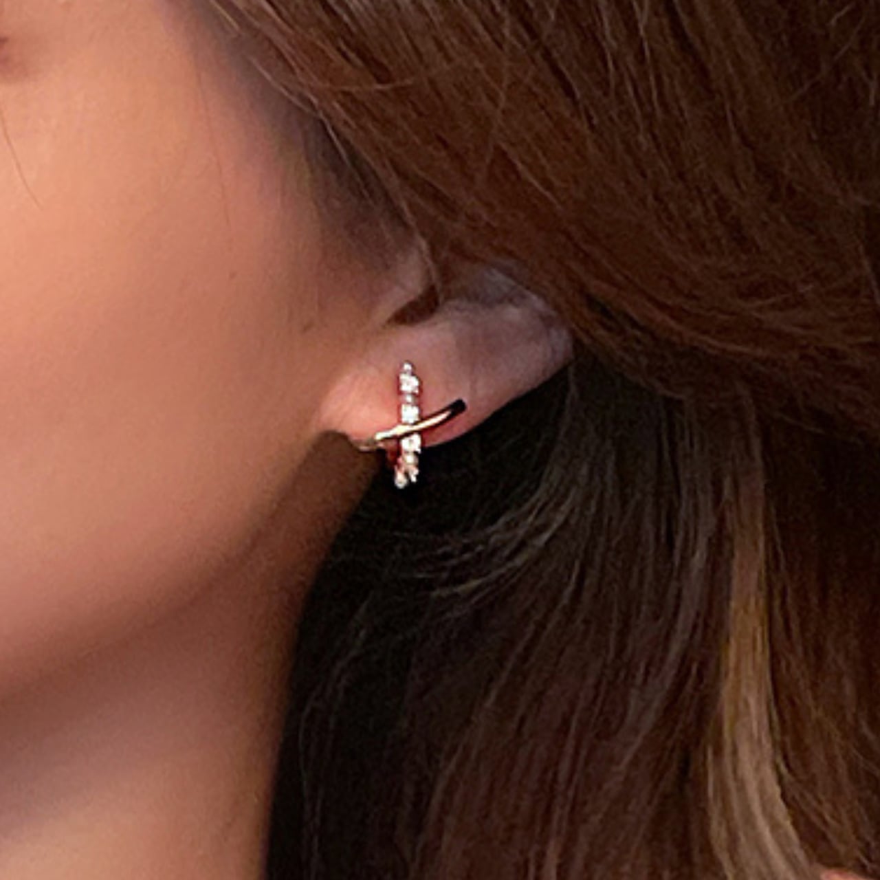 ゴールドのクロスデザインがモダンな印象のピアス。小粒のデザインが上品なアクセントになっています。シンプルながらも存在感のあるデザインで、どんなスタイルにも合わせやすいです。